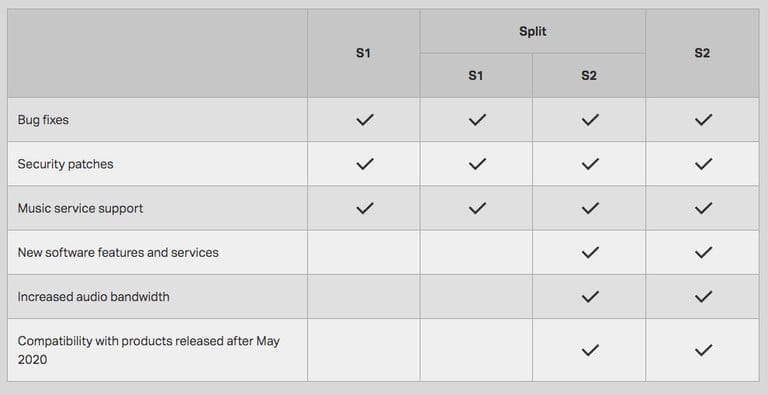 In de Sonos S2 app zullen regelmatig nieuwe software en mogelijkheden worden toegevoegd. Met de S2 app is er een grotere bandbreedte beschikbaar voor alle audio apparatuur. Daarbij ondersteund alleen de S2 app producten die vanaf heden worden uitgebracht. In de S1 app gebeurt dit niet, maar worden nog wel bugs opgelost, en blijft de beveiliging up to date.